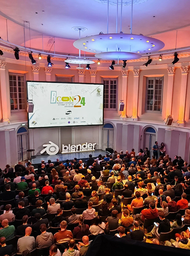 Blender Conference is an annual event hosted by the Blender official in Amsterdam, the Netherlands. It attracts over 750 artists, developers, and creators from around the world to exchange and showcase their works. International technology companies such as Meta, Google, Apple, and IBM sponsor Blender every year to support the development of open source tools.